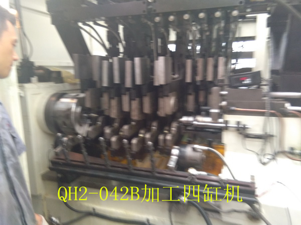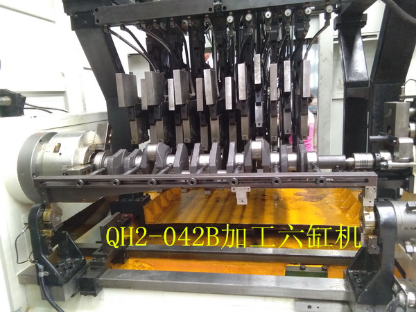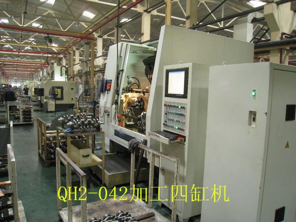 QH2-042變力曲軸圓角滾壓及滾壓校直機(jī)床(發(fā)明專利號(hào)1823602)是與武漢理工大學(xué)共同開發(fā)的一款高檔數(shù)控設(shè)備。該機(jī)床為九鉗直立布置,可以一次性對所有四缸曲軸完成的變力滾壓,自動(dòng)檢測和自動(dòng)滾壓校直的加工。該機(jī)床帶有測力器,自動(dòng)檢測工件零位,自動(dòng)檢測記錄工件加工情況和滾輪破碎自動(dòng)檢測等功能,可以完全保證工件的加工質(zhì)量。具備與著名德國的圓角滾壓設(shè)備制造商Hegenscheidt公司產(chǎn)品同樣的功能,具有極高的性價(jià)比。