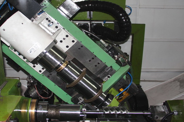 機(jī)床砂輪架上安裝有兩個(gè)CBN砂輪部件,分別完成轉(zhuǎn)子槽的粗/精磨削,砂輪架可沿軸向移動(dòng),使CBN砂輪移動(dòng)至對(duì)應(yīng)的磨削工位。通過對(duì)工件的粗磨及精磨,是一種大幅提高螺桿/螺旋轉(zhuǎn)子工件齒型型線各項(xiàng)精度指標(biāo)的先進(jìn)工藝方式。